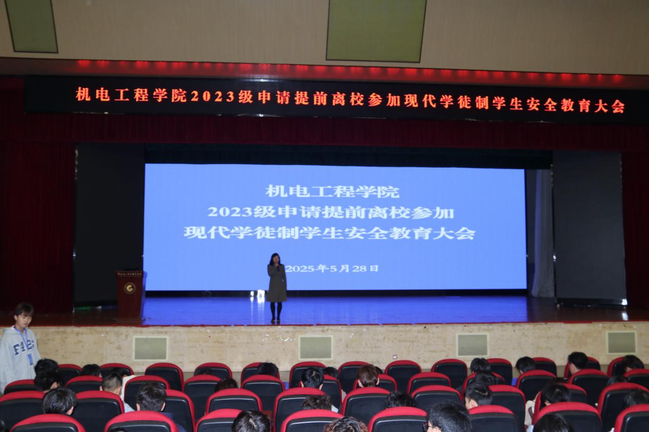 5月28日下午,太阳成集团tyc7111cc在明礼堂召开2023级现代学徒制员工安全教育大会。太阳成集团tyc7111cc院长张俊妍、副院长熊国栋、安全专员马三江出席,2023级员工参会。