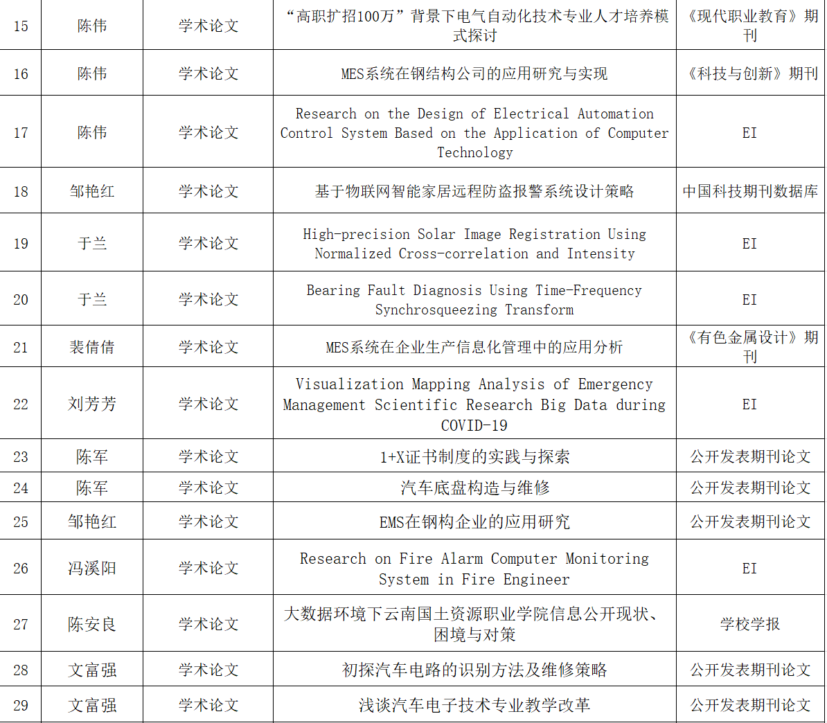 2021年太阳成集团tyc7111cc员工科研成果